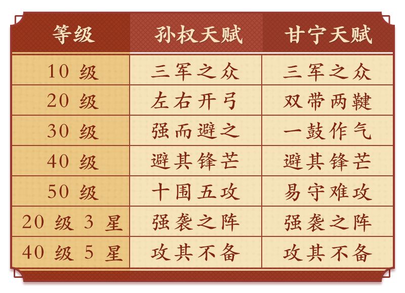 孙权与甘宁的天赋搭配如下表: