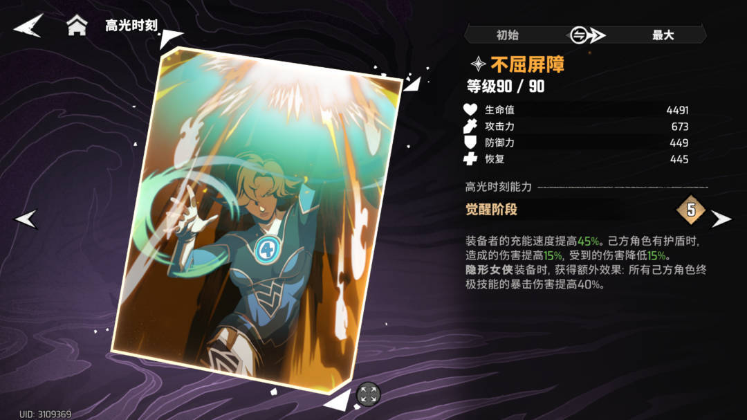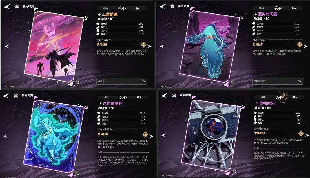 没有其他充能手段,就打个后补充能,【遛狗时间到】主属性生命值提高,隐形女用不到,而后段的使用终极技返还若干终极能量,频繁打出终极技,不过至少梦境通行证68元劝退,有就带。