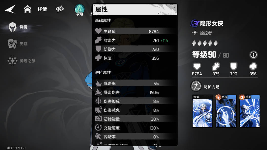 隐形女的数值关于攻击力,攻击力越高护盾越厚。