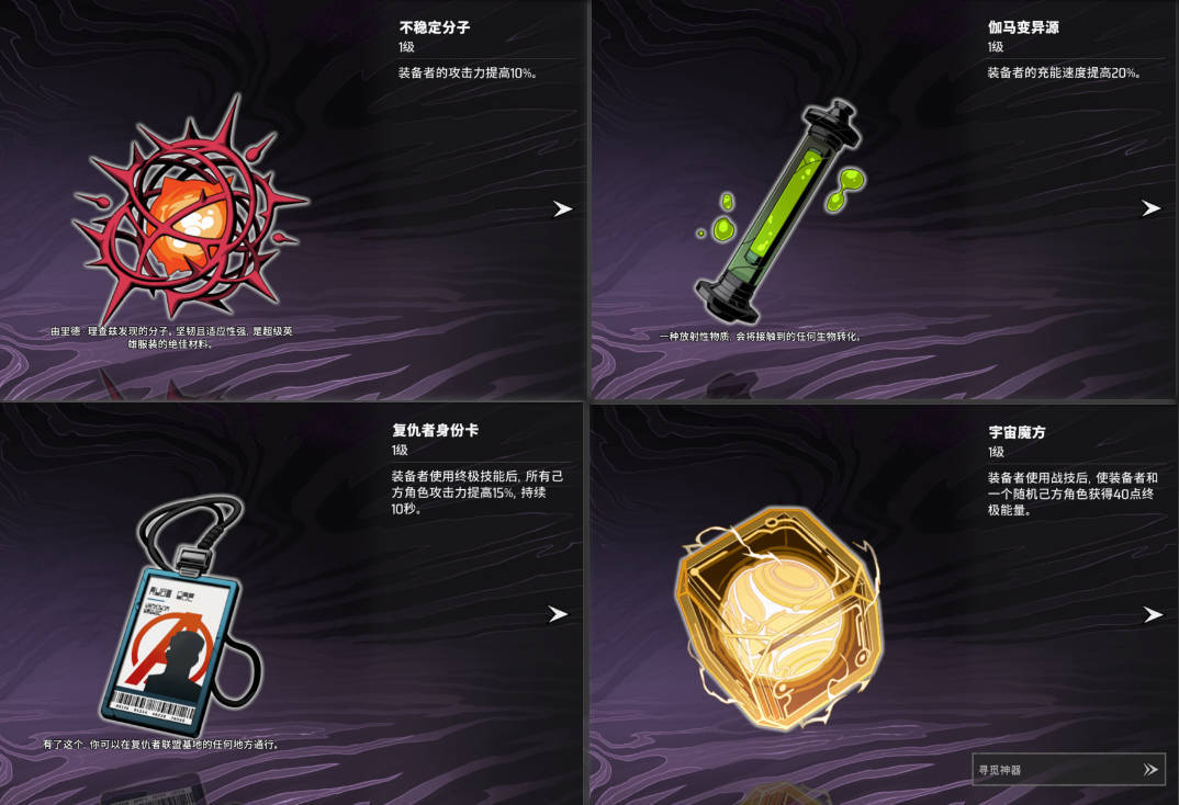 运气好的若是有【宇宙魔方】也可以携带,与【伽马变异源】组就好,可以少点护盾量,释放终极技叠盾增伤。