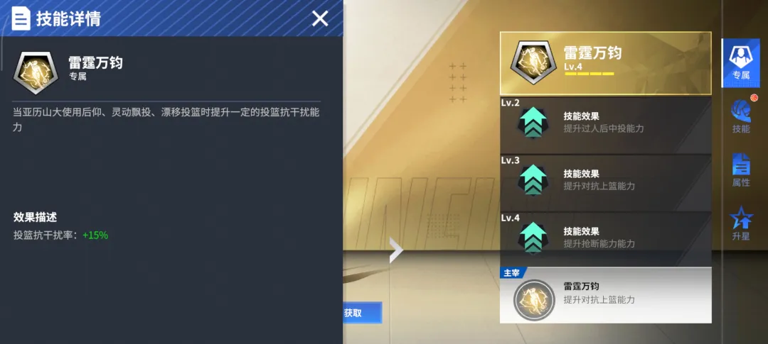 4级专属:在使用后仰、飘投、漂移投篮时提升15%抗干扰