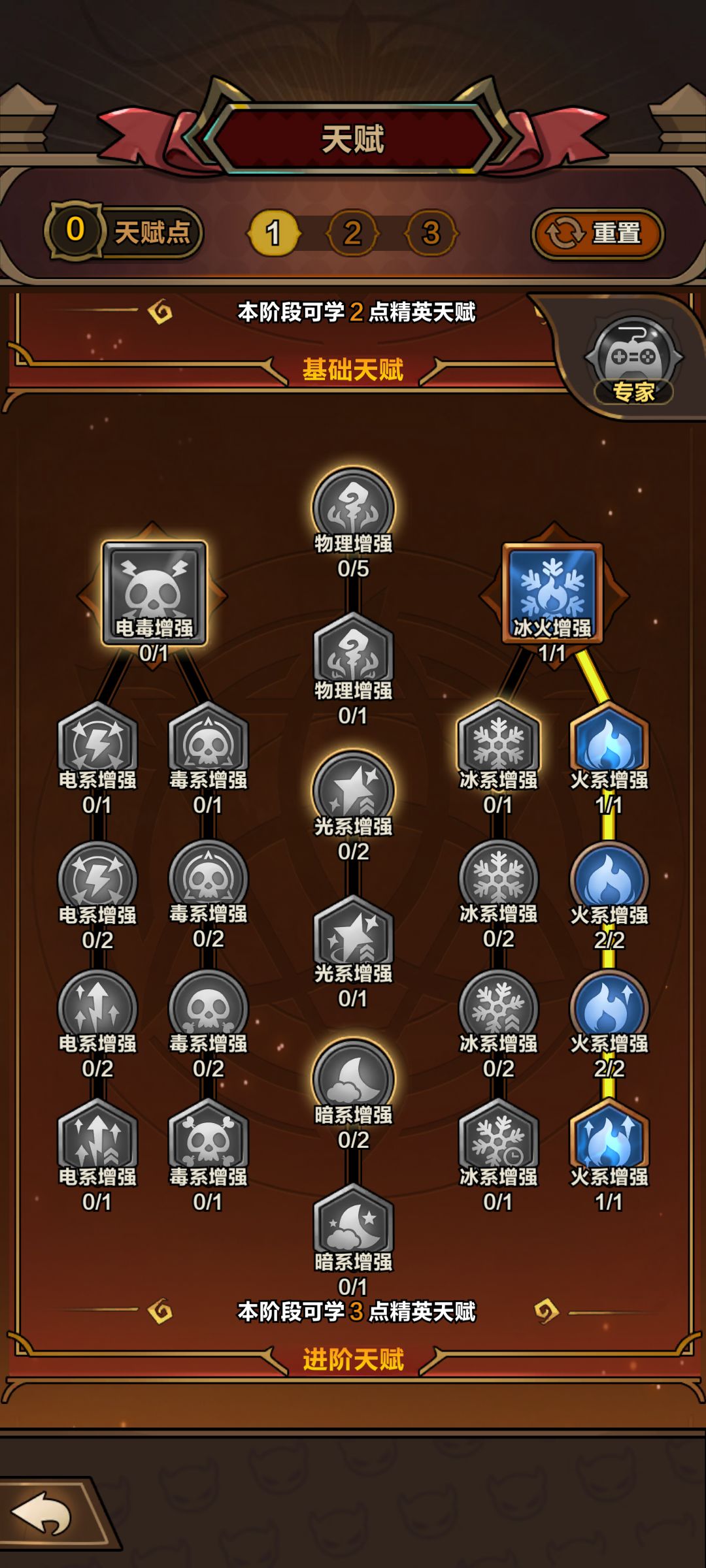 开局思路 :优先获得火系三个宠物开技能,让技能选择更加可控,时装用蓝色的火球时装,一星即可。有能力建议满星,这是火系最强时装。