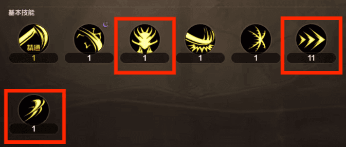 这三个被红框标记的基础技能就是剑豪必须学习的