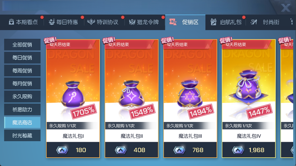 更新后,在商区-促销区还可购买多种华彩新章组合包,购买前10个华彩新章礼包可享1折优惠!限时限量,赶快参与起来吧!