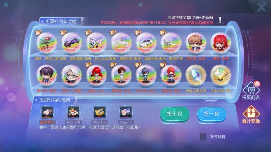 11月20日更新后至12月18日更新前,六周年特供版扭蛋机开启限时回馈!