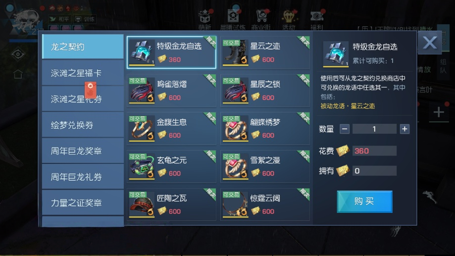 商区-促销区-金龙宝库中上架全新的金龙礼包,欢迎大家按需选购。