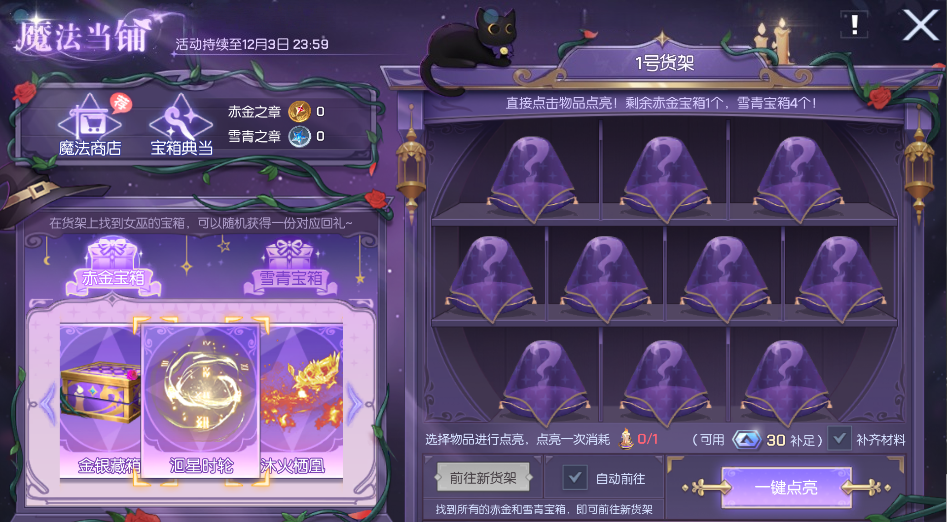 累计开启宝箱,可以进入女巫的宝箱典当行,兑换自选奖励!商业街中同步上架魔法礼包,助力加速探索魔法当铺,赶快参与起来吧!