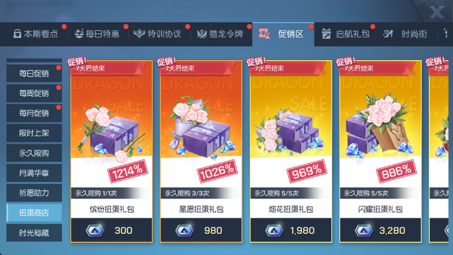 同时更有扭蛋限时礼包开启,超值返利不停歇!11月20日更新后至11月26日23:59,在商业街-商区-促销区中将上架扭蛋系列限时礼包,购买系列礼包可获得海量钻石、时光座驾碎片、游戏达人套组、回声序列、座驾焕彩道具等珍稀奖励!