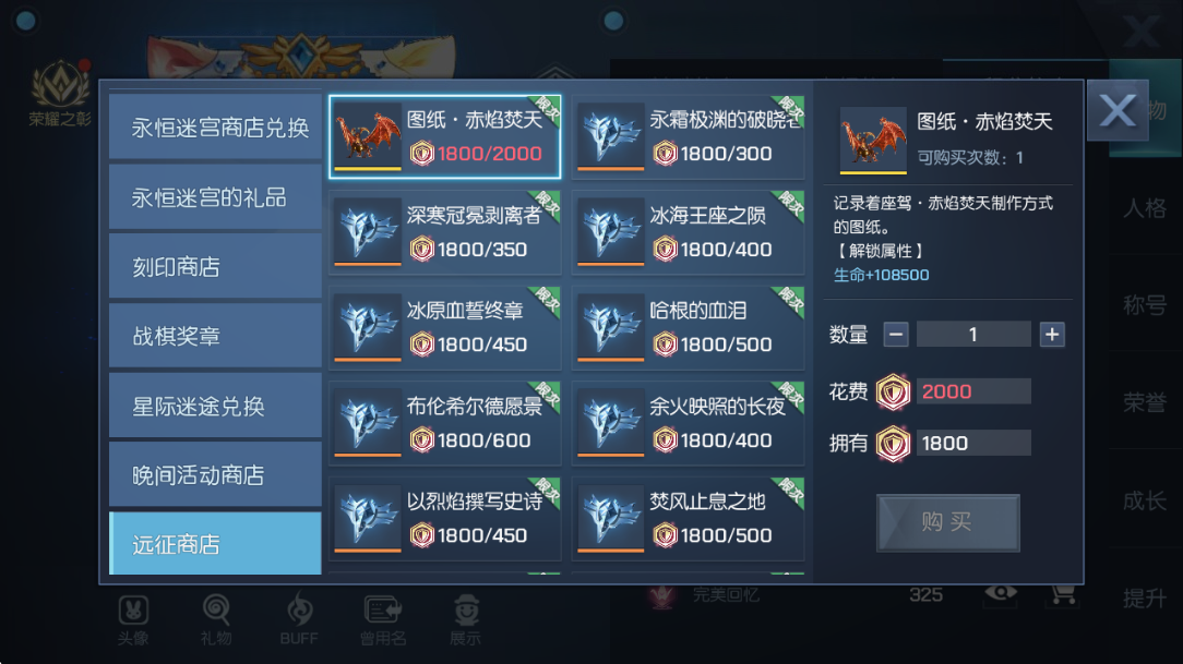 参与挑战可获得远征历练点数昼影流金、随机星盘盒、随机高阶星盘、英灵材料、灵树材料、龙茧材料等丰厚奖励!