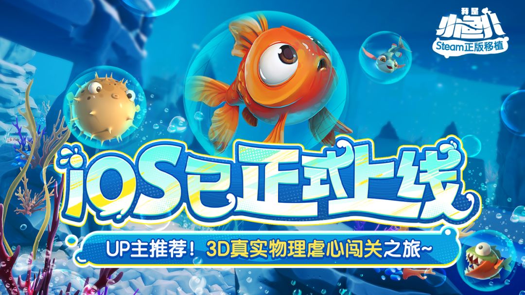 鲤鱼Ace、中国BOY、逍遥散人、薄海纸鱼等多位千万级UP主推荐!由Bossa 工作室开发,授权良心工作室代理发行的Steam正版移植,3D真实物理模拟游戏《我是小鱼儿》现已正式上线iOS端~