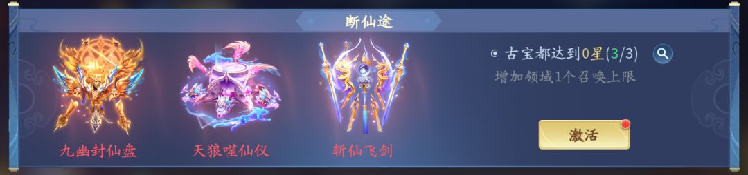 除了全新绝世神兵以外,寻宝还能解锁混沌古宝套装【断仙途】,提供高额属性加成~
