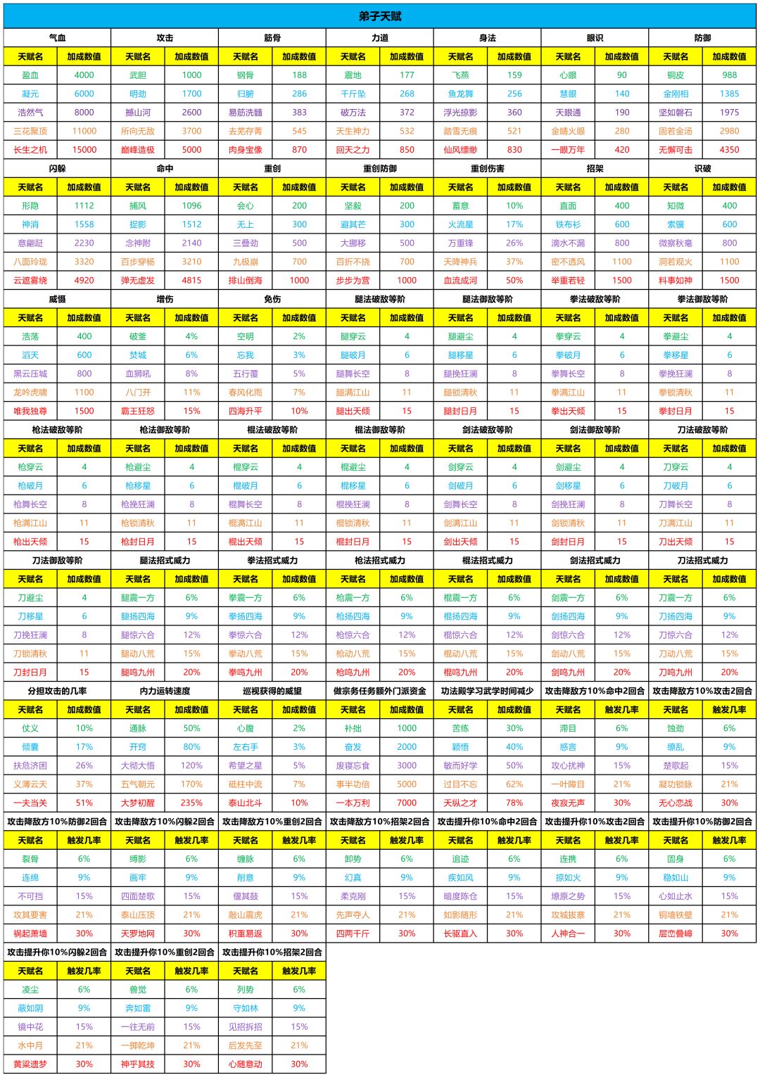 【门派攻略】弟子天赋大全