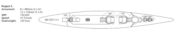 第二次世界大战结束后,衣阿华级六号舰肯塔基号的建造任务被逐渐搁置。为了能利用其建造进度尚可的船体,从1945年12月起设计部门对肯塔基提出了多种作为“防空舰”完成建造的设想。目前能够被找到的方案有F、G、H三个,均配备有可对空的四联装203mmL55的主炮塔和数座与CL-154方案一致的双联装127mmL54炮塔,本次开发计划中我们选中了其中的G方案。