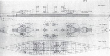 G组是全部设计中最“具竞争力”和“令人满意”的一组设计,全部设计采用了4座四联装381mm主炮,G设计没有副炮。朱塞佩•马志尼(G‘方案)则保持了与F组一致的副炮火力,船只命名取自意大利独立三杰之一的朱塞佩•马志尼。