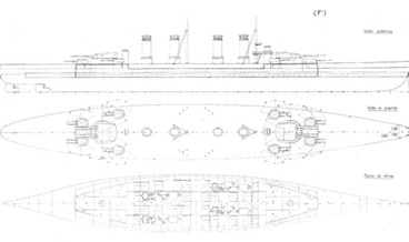 就职于拉斯佩齐亚造船厂的海军工程师费拉蒂少将设计了意大利第一型快速战列舰“弗朗西斯科•卡拉乔洛”,但在卡拉乔洛级战列舰最终定型之前,费拉蒂少将在不晚于1915年的时间至少还曾设计过9个不同的战列舰方案。这些方案分为F、D、G三个组,全部的设计拥有与卡拉乔洛级战列舰近似的尺寸和互有取舍的参数,并且全部装备四联装381mm主炮塔,其中绝大部分方案还配备了大口径的炮塔化副炮。如今,我们能够在意大利海军办公室(USMM)的抽屉中找到这些图纸,但无从确认这些船只是卡拉乔洛的竞品还是后继者。