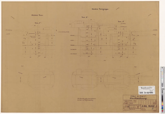 这些船只还将配备有射速缓慢但威力惊人的191mm大口径副炮,在USMM对于图纸的标注中曾将更大口径的副炮标记为170mm,但并未找到关于该火炮的任何其他信息,费拉蒂可能仅使用该口径火炮来辅助设计研究。在意大利战前的装甲巡洋舰上曾装备有191mmL45 1908型火炮,如果这些船只能够被建造,这显然是大口径副炮的有力候选者之一,因此我们选用其作为该科技线的大口径副炮。