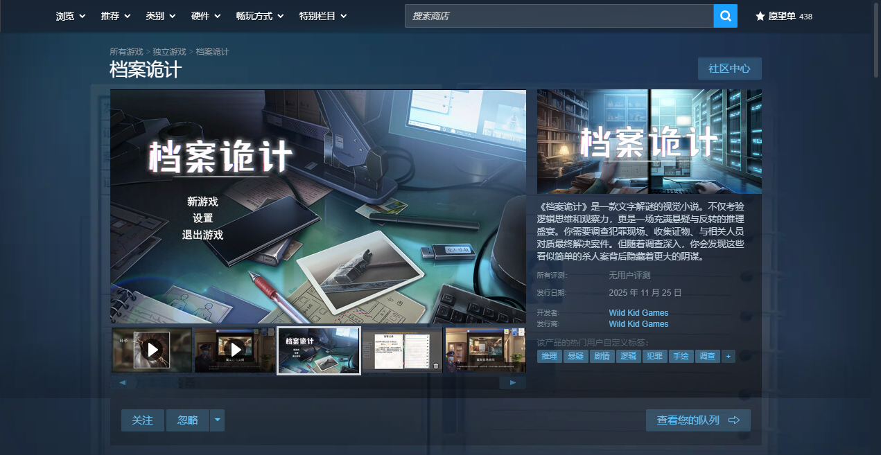 我们工作室的新作《档案诡计》(File Tricks) 是一款文字解谜的视觉小说,正式定档 2025年11月25日 于 Steam 发售!