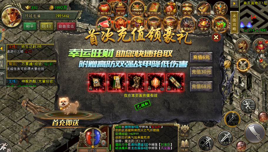 - 行会福利+签到奖励:加入行会後,新手可直接在“行会商店”用基础贡献兑换“坚固手套”“钢铁头盔”,签到3天还能领取“攻击戒指”(战士)、“魔法戒指”(法师),这些装备能直接填补过渡装的属性短板。