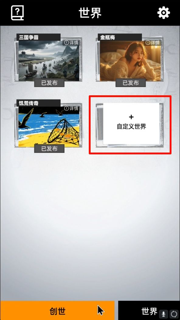 - 点击【发布】可以发布世界,发布后在【世界】界面可以直接游玩