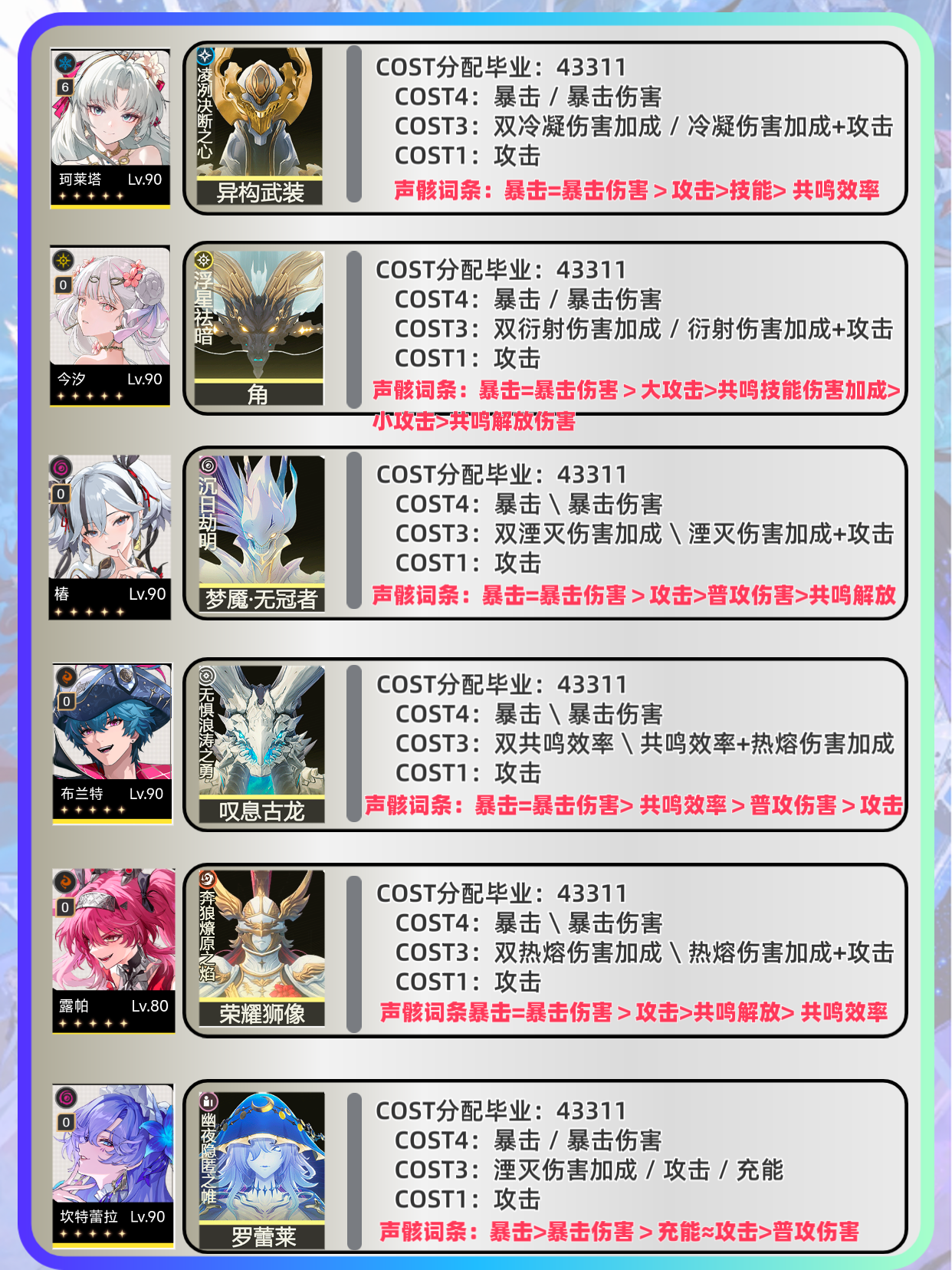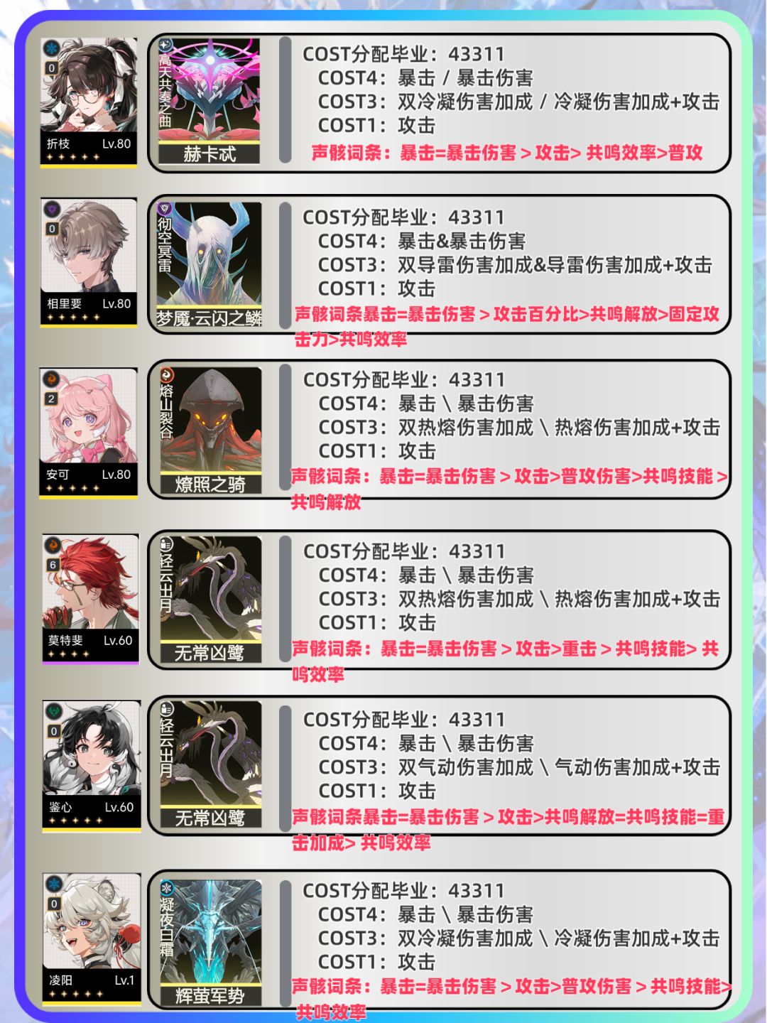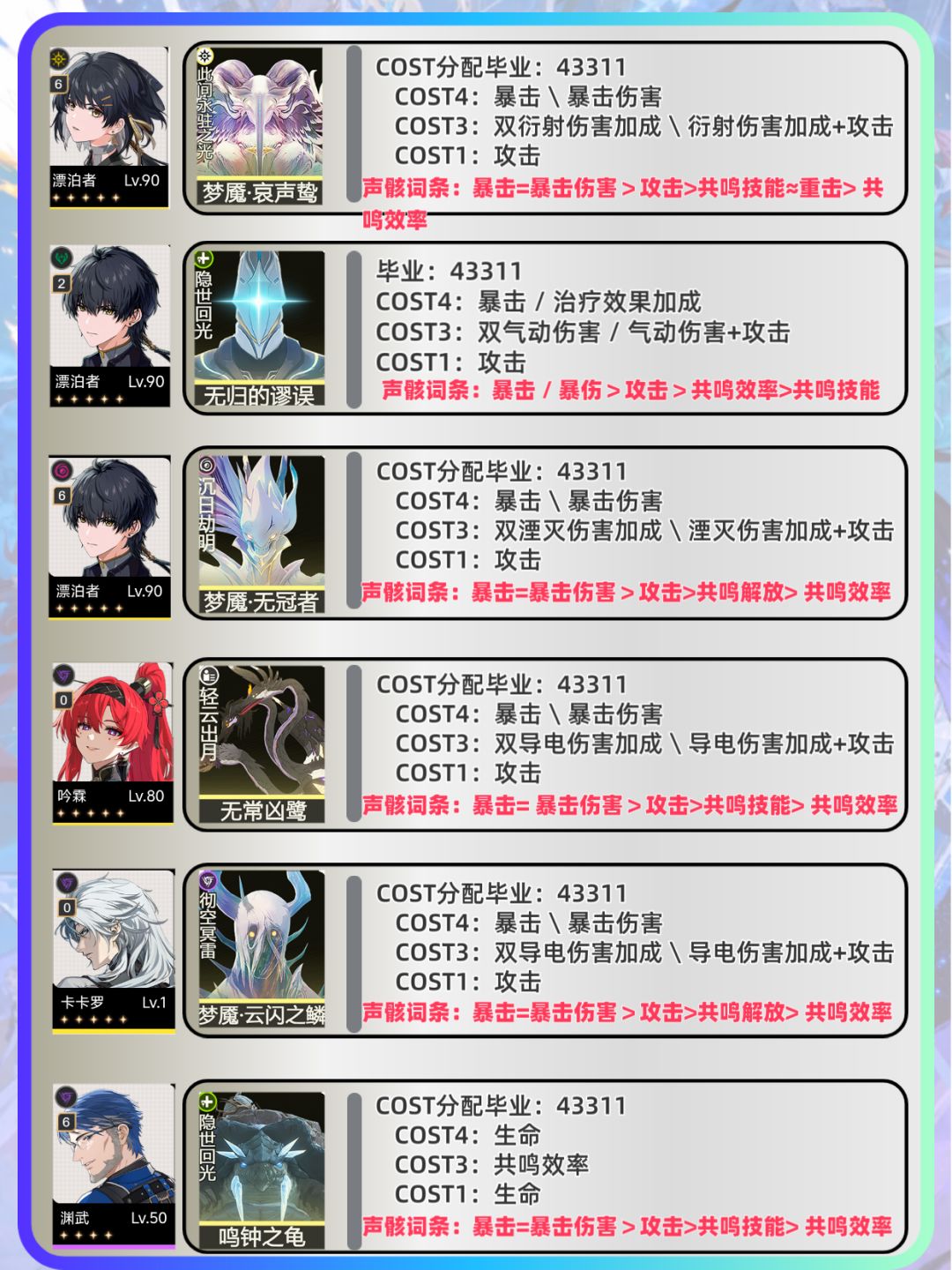 毕业:43311(3命理+2幽夜/沉日,首位推荐共鸣回响·鸣式·利维亚坦