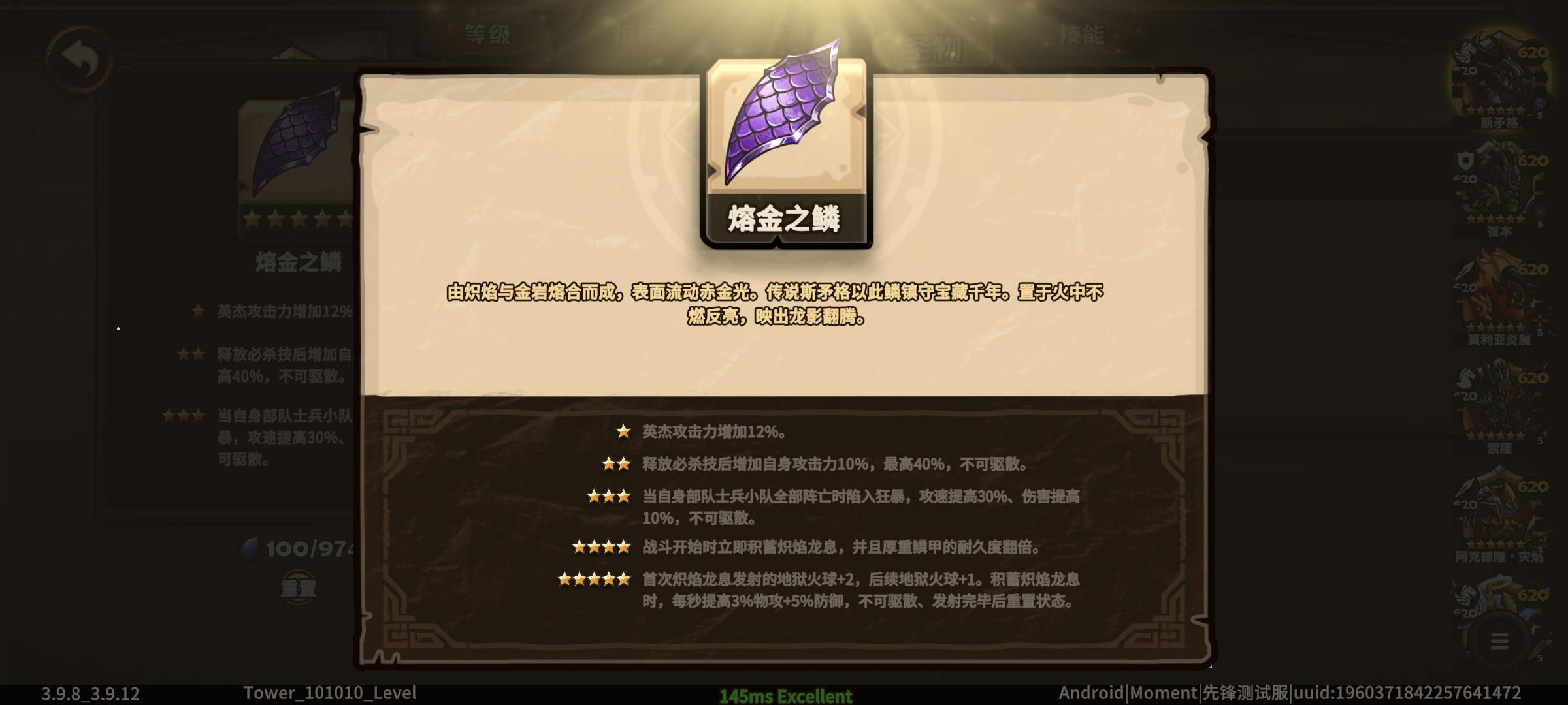每10秒全图范围内随机吐多颗火球,每轮5颗,每颗130%物攻,自带凯撒光环走得慢有盾,未必不是好事,毕竟他是读秒全图输出,相对安全,晚进场也不影响他抢伤害,普5应龙飞天也能完美适配,禁普攻加回血加伤害,以技能为主。