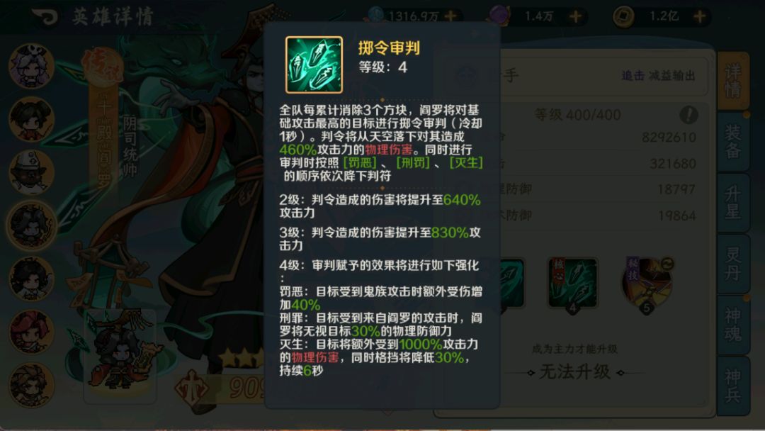从上面可以看出在属性方面差距很大,同追击大c的定位下阎罗更有威力,阎罗6星时自身无视30%物防的效果让其稳定输出,这个效果无论是任何环境下都十分吃香。