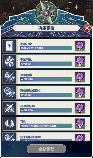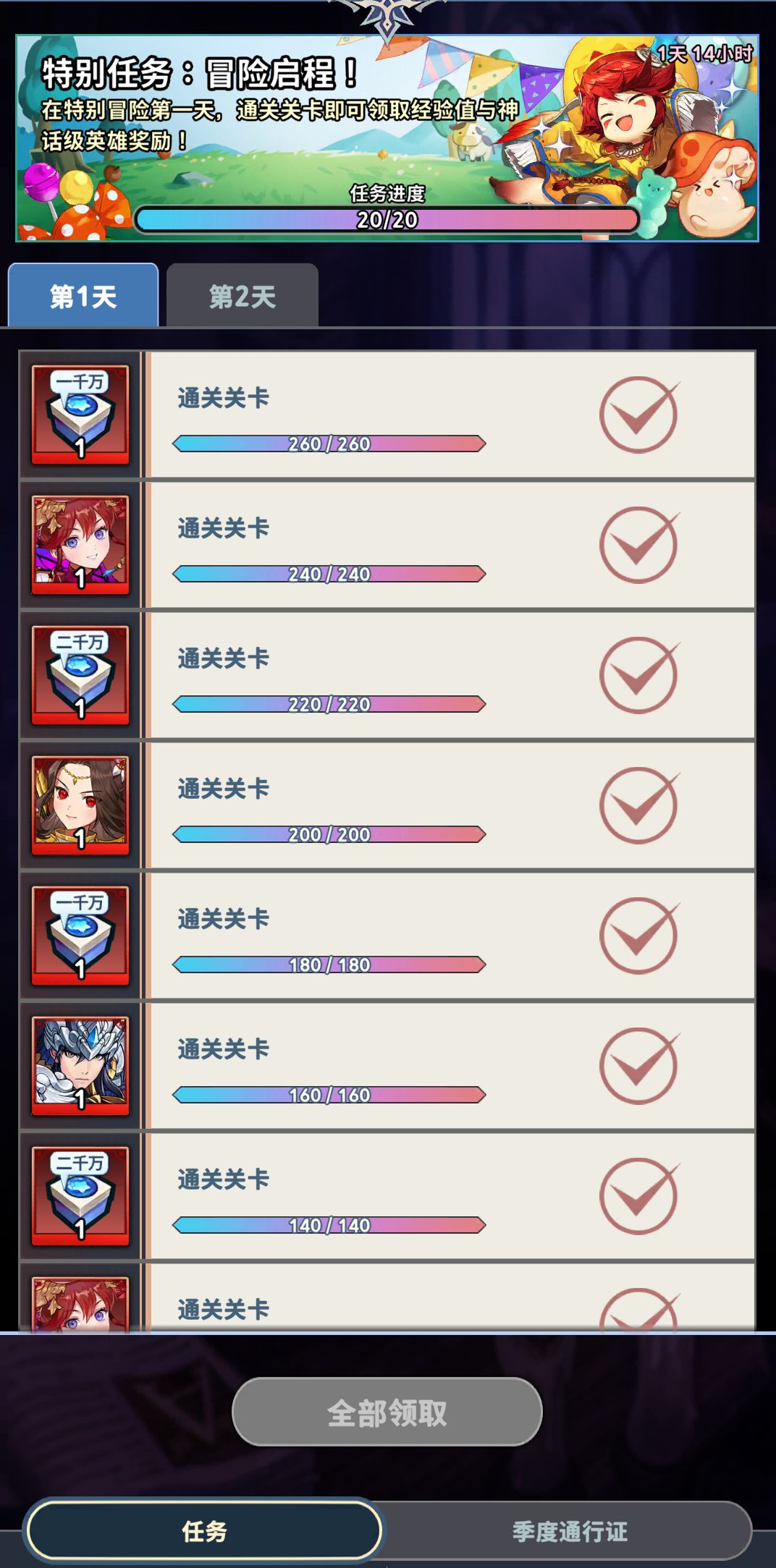 参与特别任务:冒险启程、关卡、英雄经验值副本、离线奖励