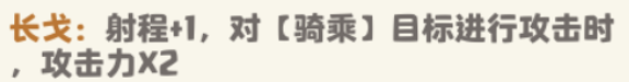 该技能是一个对策技能,如果敌方放置骑乘类的随从,我们便可以放置哨位或禁卫进行应对,可以轻松的解决掉大部分骑乘类随从,同时攻击距离加1,也令哨位和禁卫更偏向与防守,适合放在队伍中间位置。