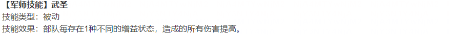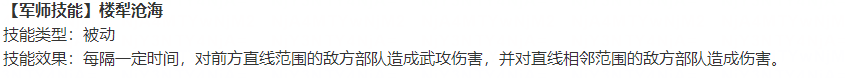 此外,还有一个点是这个技能是首个军师位的输出技能,不知道会不会受到主副将的部队增益的影响,如果军师位的输出技能会受到主副将影响的话,那么可以由主副将带上增伤技能如狂战不休,跗骨枪芒等来增加其伤害。