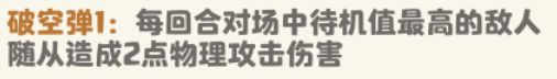 进阶技巧:当破碎猎人达到4级时,该技能将得到加强,当敌方释放普通攻击之外的行动时,破碎猎人都会进行拦截并对其单位造成2点物理伤害,诸如星落等技能。