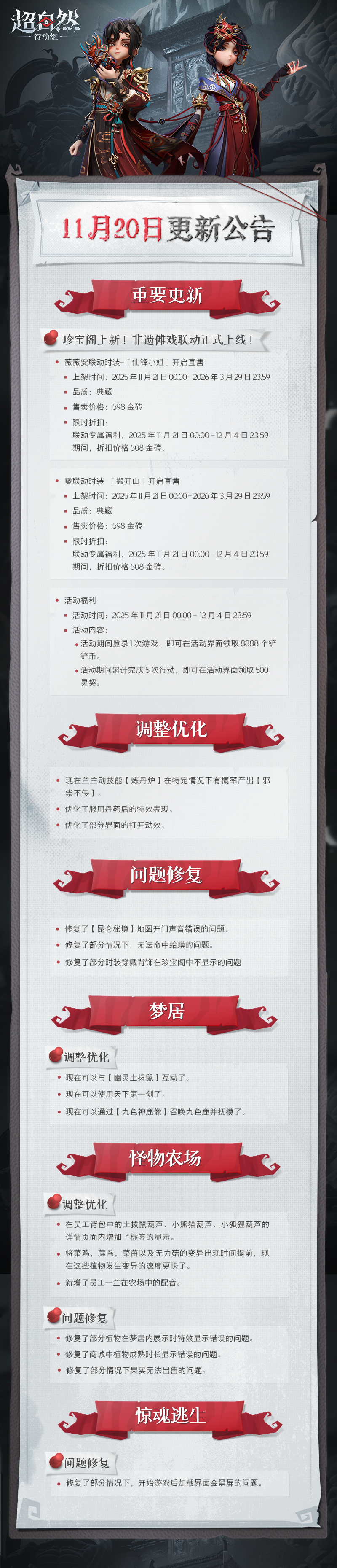 11月20日更新——非遗傩戏联动「仙锋小姐」&「搬开山」即将上线