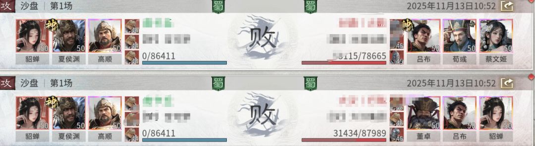 但在面对吕布追击队时,此阵容会显现疲态。吕布拥有速度优势,能率先出手压低我方血线,致使夏侯渊的爆发链在启动前就被破坏。