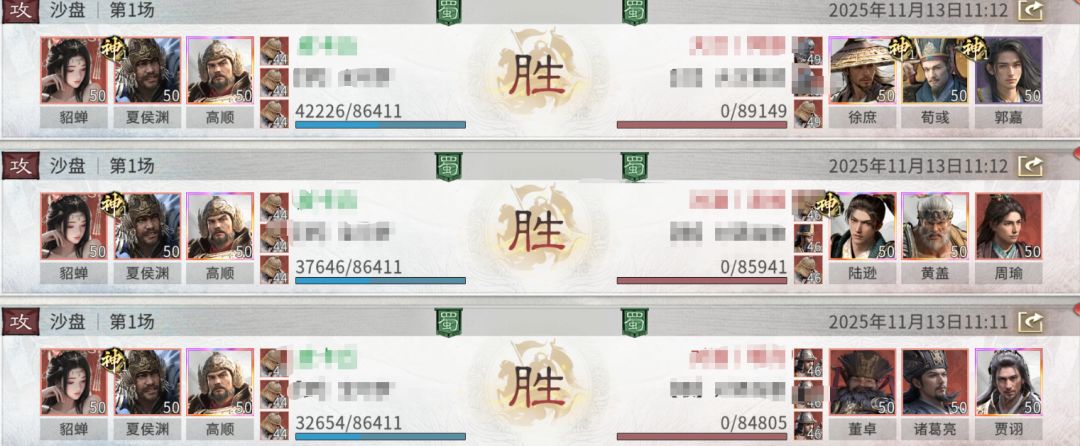 二.战报以及克制关系该阵容强度在线,面对当前主流队伍均有一战之力。面对孙尚香追击队为优势对局,应对贾诩队时,若能保证己方站位集中,亦可大概率取胜。