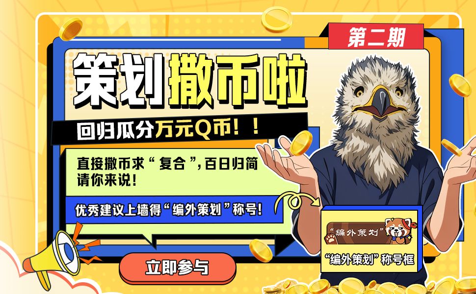 而第二期“策划撒币了”活动也正在进行中,同样为大家准备了丰厚的Q币奖励,欢迎各位旅者们回归、体验不断优化的山海,说一说你的建议!
