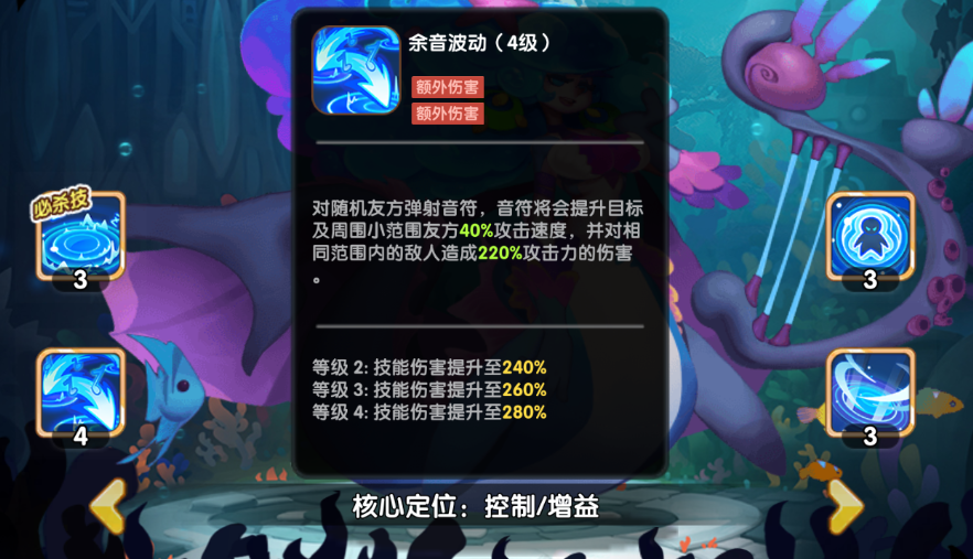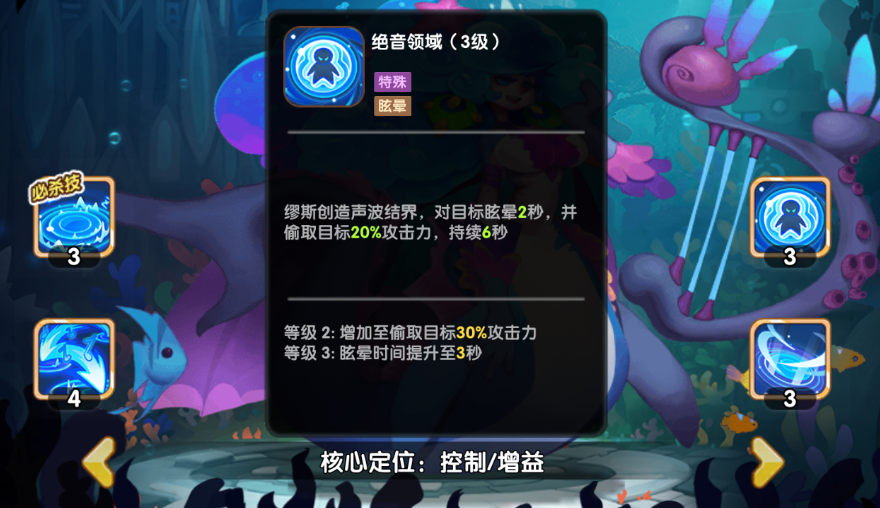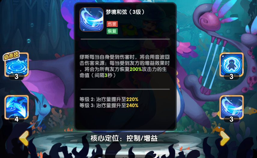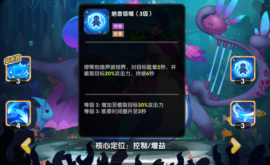 、增伤、提高攻速、眩晕、窃取攻击力、回血;好像缪斯具有辅助所能具有的一切能力,简直就是