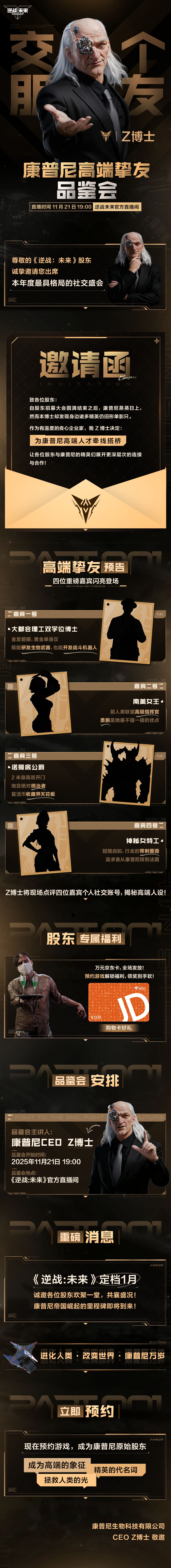 四位游戏角色首次公开社交账号,Z博士现场毒舌点评 ,万元京东卡疯狂发放。11月21日晚19:00,《逆战:未来》官方直播间,诚邀各位股东欢聚一堂,共襄盛况!