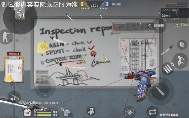 其检视动作则是数缕红丝线突然窜出缠缚枪身,远处六柄寒光利刃破空直指玩家,危急时刻龙泉剑疾驰而至,以一抵六挡住利刃,龙泉剑裹挟气劲震碎丝线,随后绕枪身旋飞两圈,玩家再将GLOCK-姬如雪在指尖旋转后握稳。技能上,这款副武器不仅能增加所有背包手枪子弹数,还支持点射与三连发切换:近距离用三连发快速打伤害,远距离切单点控准度,适配多场景对战。