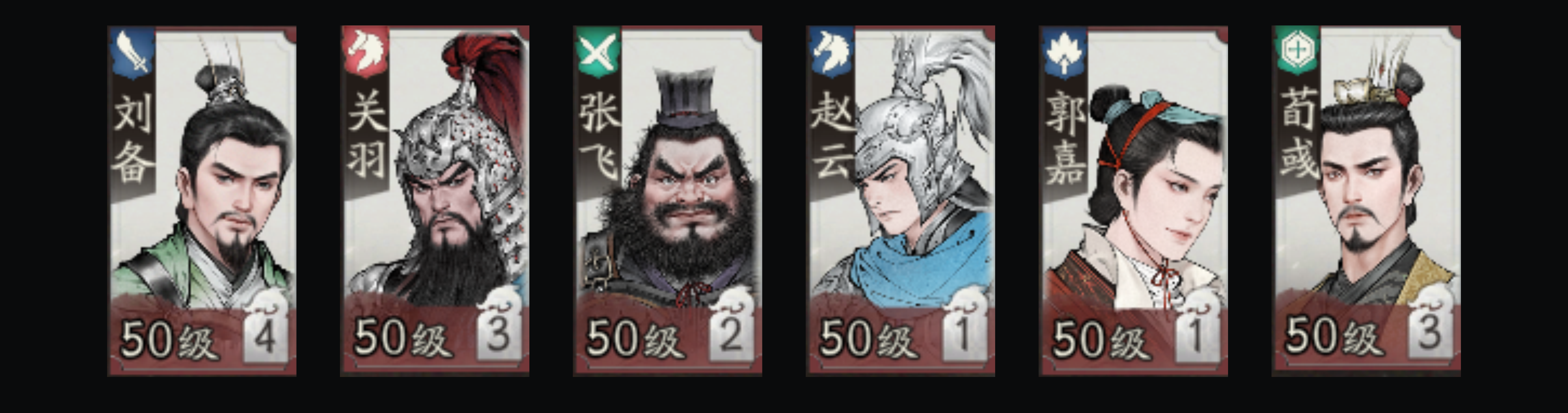 刘备、关羽、张飞、赵云、郭嘉、荀彧