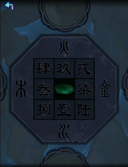 16、根据石桌上的文字推断,要把九宫格数字调整为横竖相加为15,获得碧色石头,把它放在第四根柱子的凹槽处,本章结束