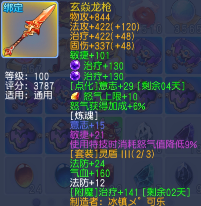 基础属性:物攻、治疗、固伤全满,堪称完美神器。