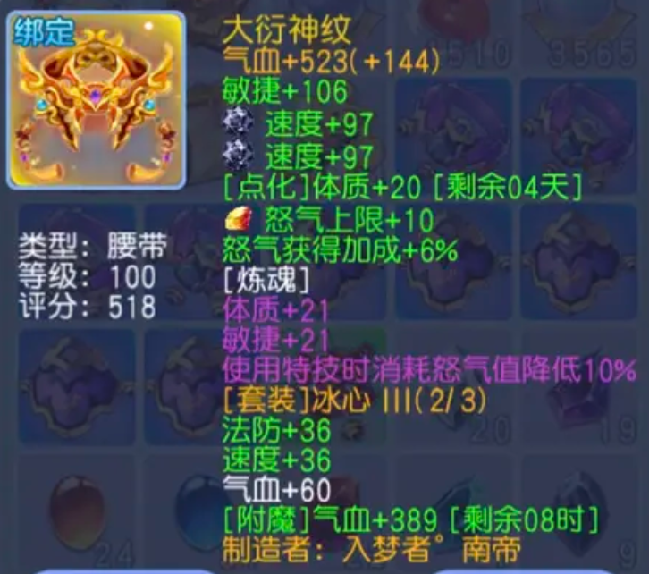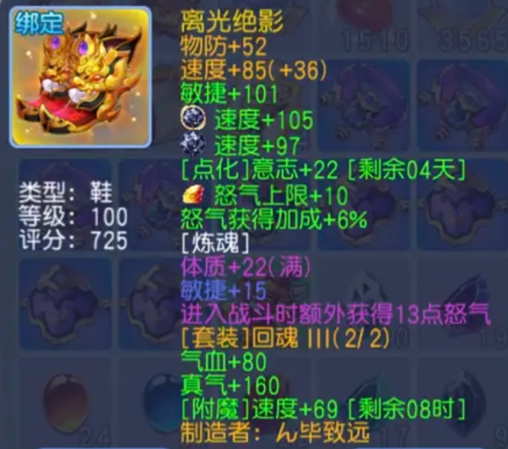 附加属性:单加敏捷101,速度加成极致,比双加或三加117属性更贵。