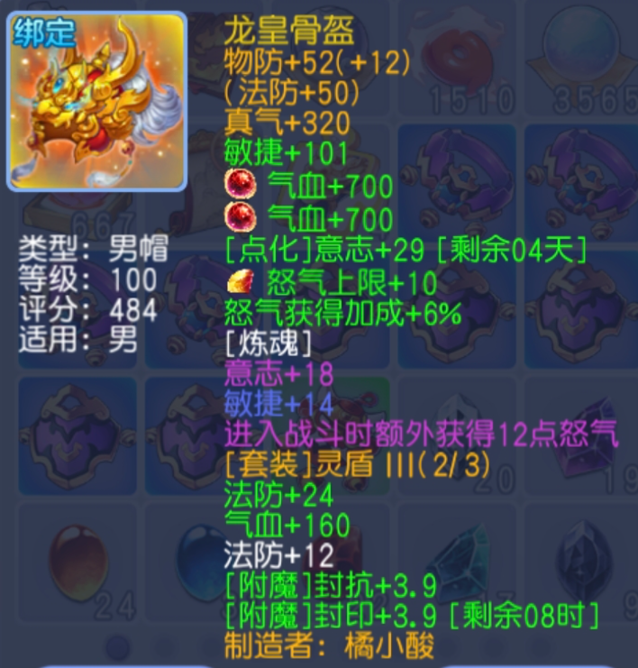 炼魂:意志15,敏捷21,属性稍低但契合全敏捷路线,封印治疗自由切换。特效怒耗降9%,接近满值,非常实用。