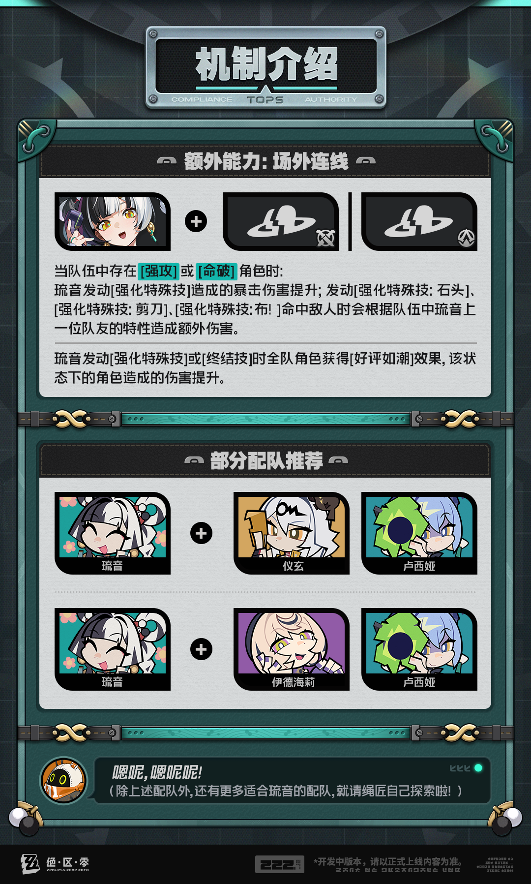 资料库中已收录代理人【琉音】的战斗相关信息,重点内容解析完毕,请查收。