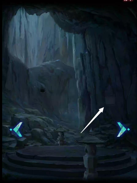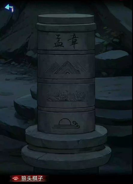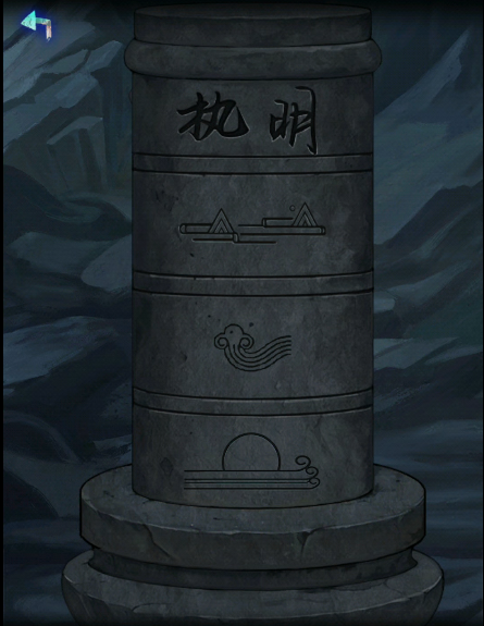 5、点击两个灯柱,可看见灯柱上分别由不同的画和数字,其中放清泉水的柱子上还写了个“北”字,点击中间祭台的四个方向,可看到不同的图案排列。