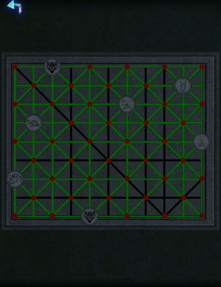 7、修改图腾之后获得碧色酒壶,酒壶放在右边女石像手上,棋盘出现小游戏,将狼头棋子填充上去,完成小游戏获得一杯酒。