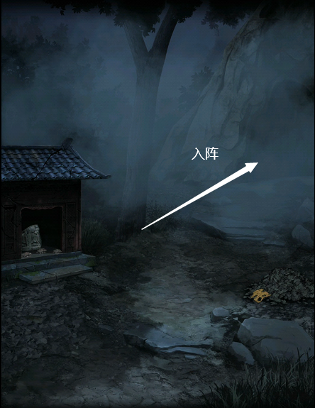 3、点击山洞入阵,根据两张纸条的顺序排布分别点击“未午 辰丑 巳戌”,使用石盘开门。