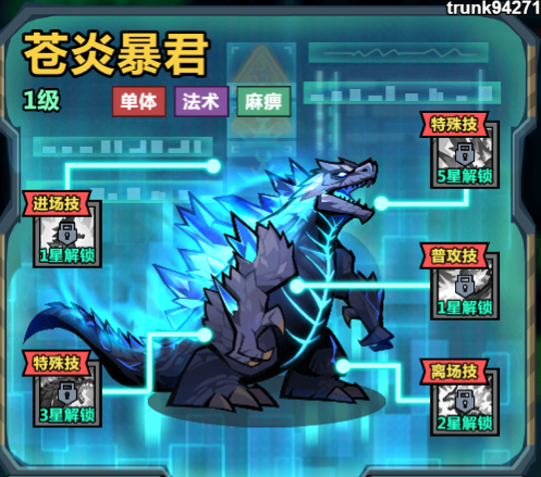 苍炎暴君可以释放原子吐息与电磁贯刺等强大的技能,甚至可以延长其部分战斗的持续时间。苍炎暴君可在归墟幻海(测试版)中获取。