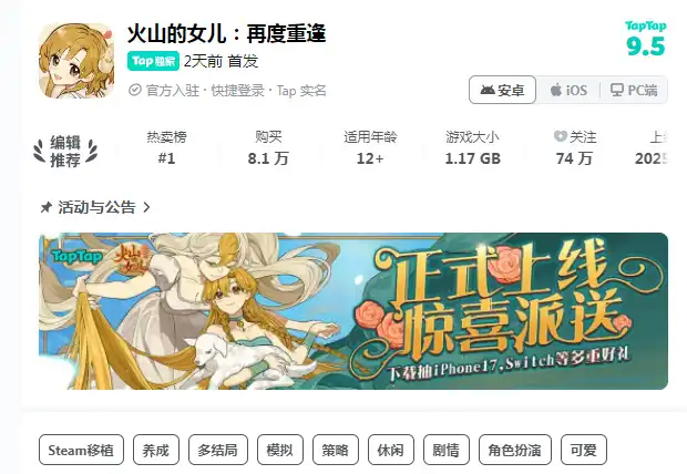 终于可以手机养女儿啦!《火山的女儿》手机版现已上线~