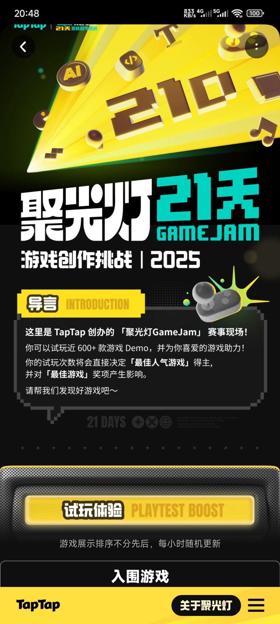 2025年聚光灯线上的主题为“这真的不是bug吗”(ps:线下聚光灯48小时做出主题游戏举办过多次),参与者或团队需要在21天内根据主题在线上创作出游戏参与评选,此次聚光灯共收到600+款游戏demo