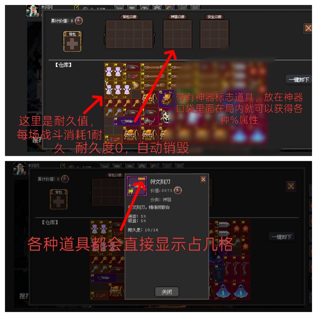 记住前期一定不要贪也不要省道具!等你跑刀攒够钱之后,有很多神器装备了再想着通关!↓